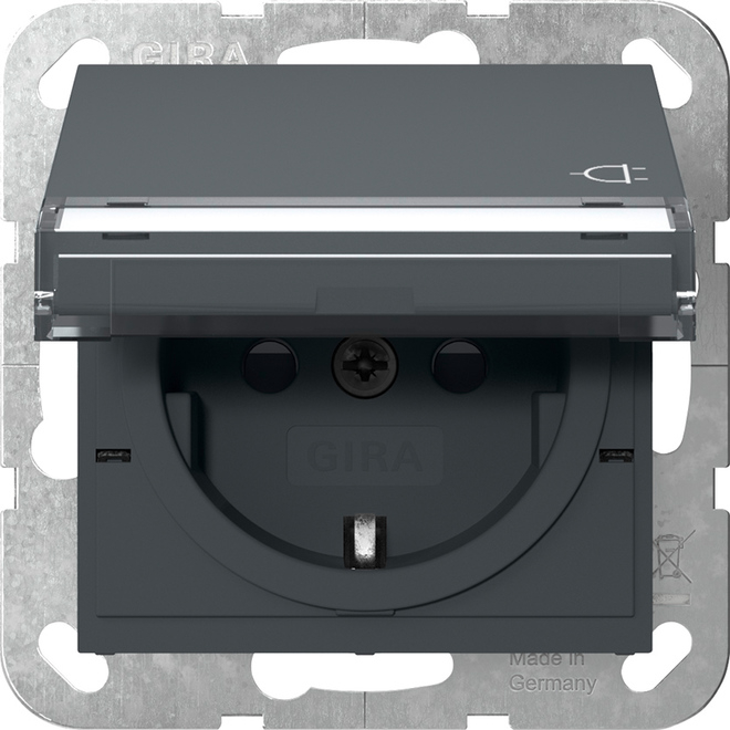 1St. Gira 455728 Steckdose 16A 250V mit Klappdeckel, Beschriftungsfeld und Shutter, Anthrazit