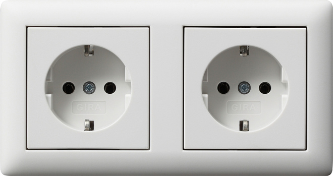 1St. Gira 479304 Steckdose 2fach 16A 250V vorverdrahtet, komplett mit Abdeckrahmen, Reinweiß seidenmatt