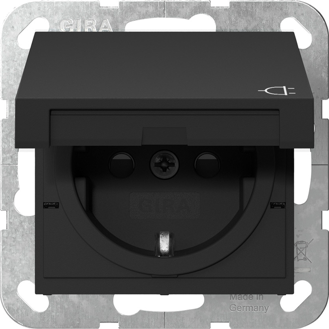 1St. Gira 4414005 Steckdose 16A 250V mit Klappdeckel und Shutter, Schwarz matt