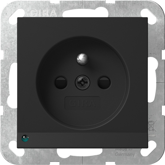 1St. Gira 4489005 Steckdose mit Erdungsstift 16A 250V LED-Orientierungsleuchte und Shutter, Schwarz matt