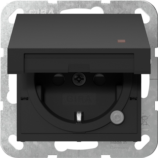 1St. Gira 4552005 Steckdose 16A 250V mit Klappdeckel, Kontrolllicht und Shutter, Schwarz matt
