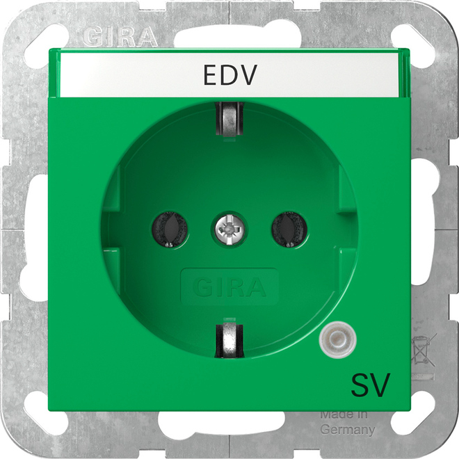 1St. Gira 4452107 Steckdose 16A 250V mit grünem Kontrolllicht und Beschriftungsfeld mit Abdeckung, Aufdruck SV, G