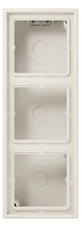 Aufputz-Kappe, 3fach, mit integrierter, flammwidriger Bodenplatte und angeformtem Rahmen, zum Einbau von Unterputz-Geräten mit LS-990-Abdeckungen