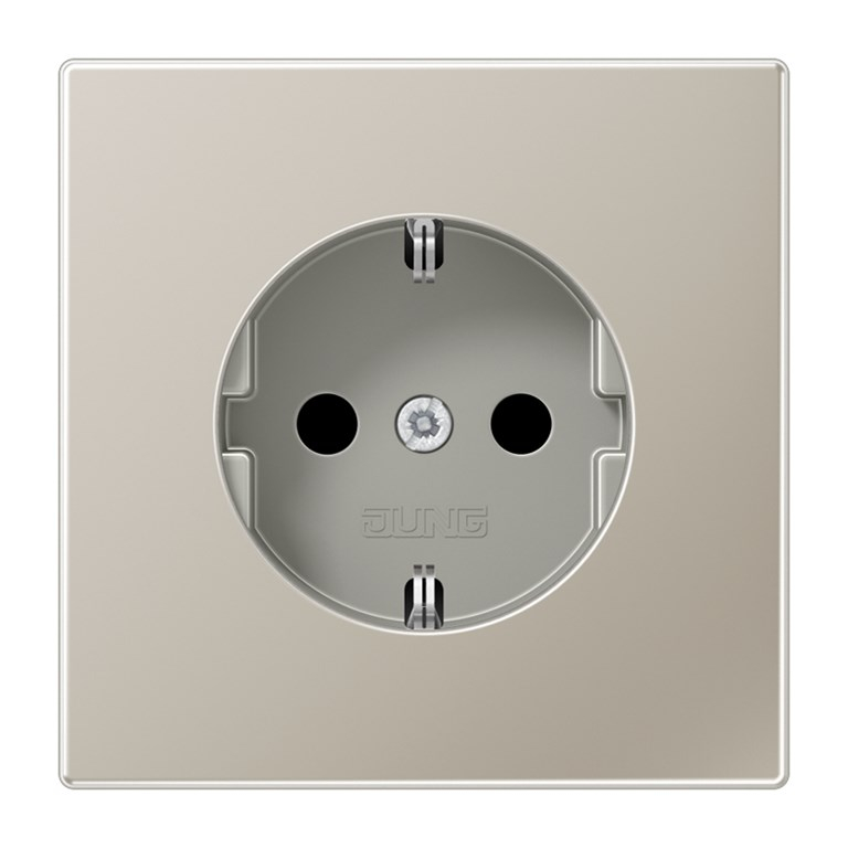 SCHUKO® Steckdose für Serie LS, Metallausführungen. Mit Federklemmen für starre Leiter bis 2,5 mm2, Verbindungsklemmen nach DIN VDE 0620. Individuelle Laserbeschriftung möglich.