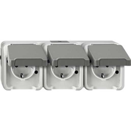 1St. Merten MEG2391-8029 Dreifach-Steckdose, waagerecht angeordnet, lichtgrau, AQUASTAR