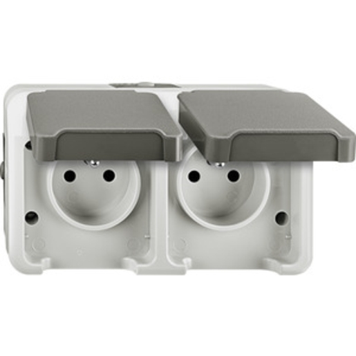 1St. Merten MEG2520-8029 Doppelsteckdose mit Schutzkontaktstift und Berührungsschutz, lichtgrau, AQUASTAR