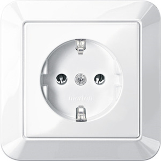 1St. Merten MEG2301-1019 Steckdose mit voller Abdeckplatte, Steckklemmen, polarweiß glänzend, 1-M