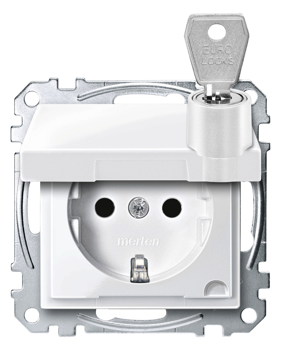 1St. Merten MEG2315-0319 Steckdose, Klappdeckel, abschließbar, verschiedene Schließungen, BRS, Steckklemmen, polarweiß g