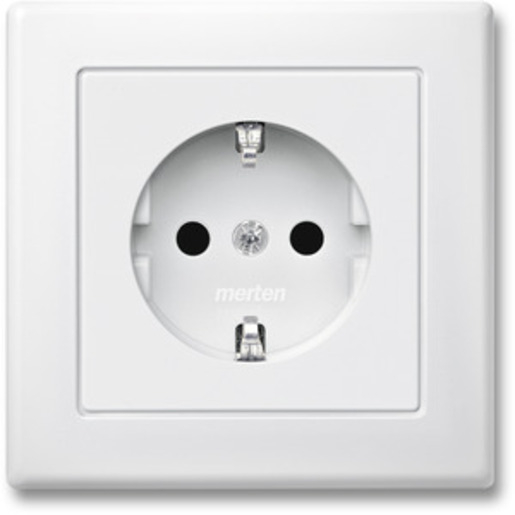 1St. Merten MEG2300-1519 Steckdose mit voller Abdeckplatte, erhöhter Berührungsschutz, Steckklemmen, polarweiß matt, M-S