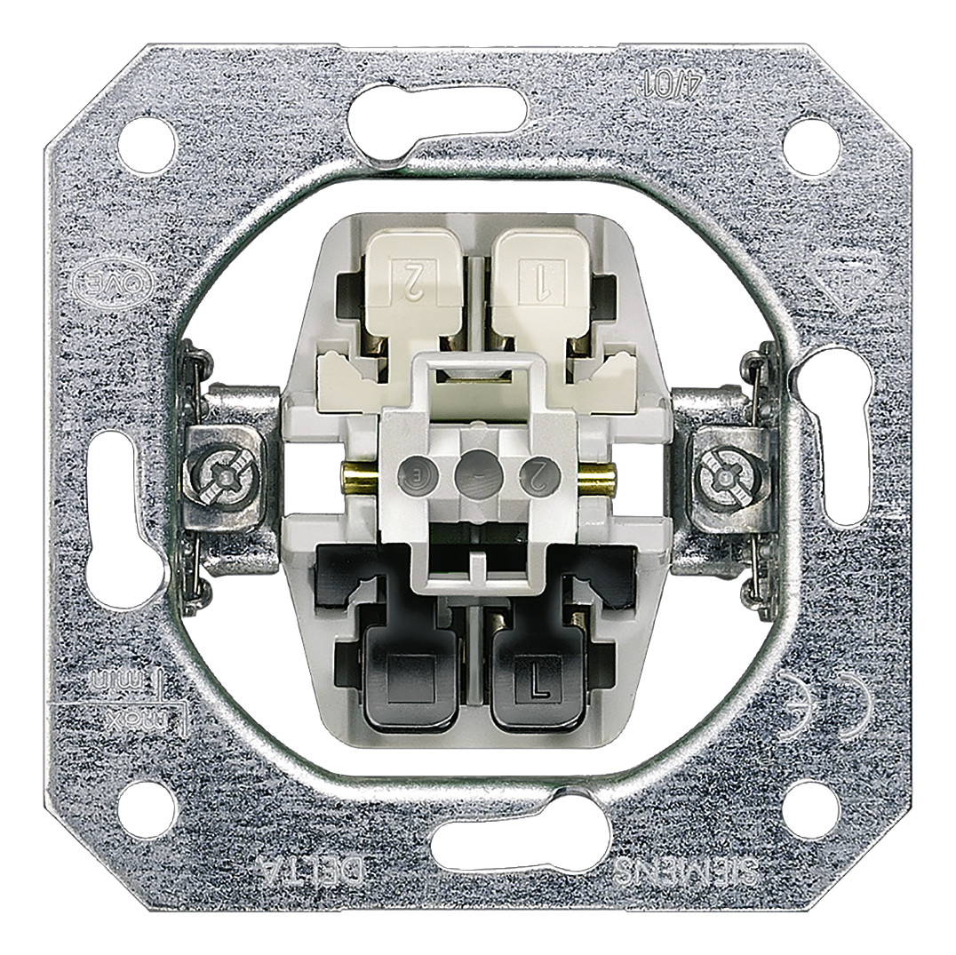 DELTA Taster-Geräteeinsatz, UP 1 Wechsler als Öffner einsetzbar 10A 250V DELTA Schalter und Steckdosen - Design und Qualität in Perfektion von Siemens. Unsere umfangreiche Produktpalette bietet Ihnen durch ihre stilsichere Formen- und Farbvielfalt eine Fülle an individuellen Gestaltungsmöglichkeiten, die die Ästhetik eines jeden Raumes gekonnt unterstreichen. Auch Hochwertigkeit und Langlebigkeit unserer DELTA Schalter und Steckdosen können wir mit unserer hohen Kompetenz in der Herstellung ren - vom Einzelteil bis zum fertigen Produkt. Die Siemens Schaltereinsätze zeichnen sich vor allem aus durch: 1. Schalter in den Varianten Aus-, Wechsel- und Kreuzschalter sowie Taster verschiedenen Ausführungen. 2. Geräteeinsatz mit Kombischraube für Torx T10- und Schlitzschraubendreher. 3. 3 mm Putzausgleich sorgen auch bei extremen Wandverhältnissen für eine zuverlässige Funktion. 4. Vielfältige Ausführungen wie Jalousiesteuerung, Bewegungsmeldung, Zeitschaltung und auch Raumtemperaturregelung sind verfügbar. www.siemens.de/delta. Siemens bietet für die sichere, effiziente elektrische Infrastruktur in Gebäuden und Industrie ein durchgängiges Portfolio an Schutz-, Schalt-, Mess- und Überwachungsgeräten, Verteilersysteme sowie Schaltern und Steckdosen.