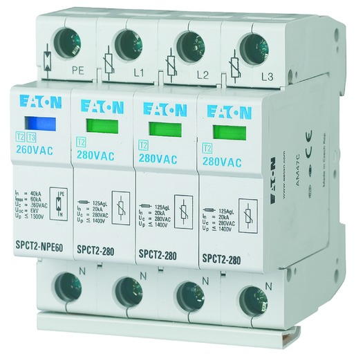 1St. Eaton 167620 Überspannungsableiter steckbar, 3p+N, 280VAC, 20kA SPCT2-280-3+NPE