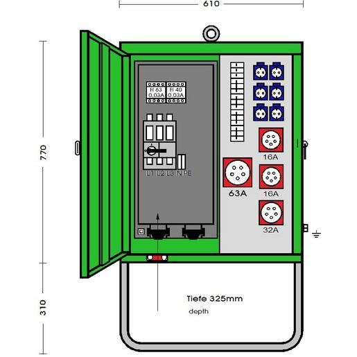 1 Anschluss als Sicherungslasttrennschalter Gr. NH00 1 FI-Schutzschalter RCD 4-polig, 63 A, I N = 0,03 A, Typ B, allstromseensitiv 1 CEKON Steckdose 5-pol. 63 A, direkt ab FI-Schutzschalter 1 CEKON Steckdose 5-pol. 32 A über LS 32 A, 3-pol. C - Kennl. 2 CEKON Steckdosen 5-pol. 16 A über LS 16 A, 3-pol. C - Kennl. 1 FI-Schutzschalter RCD 4-polig, 40 A, I N = 0,03 A, Typ A 6 Schutzkontakt-Steckdosen 16 A über LS 16 A, 1-pol. C Kennl. Anschlusswert: 44 kVA; 230/400V, 50Hz; Schutzart: offen/geschlossen IP 21/44; Gewicht ca. 48 kg, Gehäuse V 0 mit beigepacktem Untergestell, UV 1; mit montiertem Sicherungszubehör. Installationshinweis: Nicht steckerfertige, elektrische Geräte oder Bauteile, müssen von einer qualifizierten Elektrofachkraft installiert werden. Bitte beachten Sie auch die Gebrauchsanweisung. Weitere Informationen erhalten hier § 13 NAV. EAN: 4018325678084 |