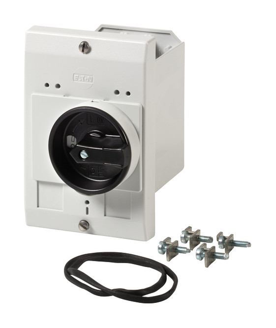 Isolierstoffgehäuse für den Einbau, für PKZM0, Schutzart IP55, integrierte Klemme für PE(N)-Anschluss, je 2 Leitungseinführungen M25 vorgeprägt, mit schwarz-grauem Drehgriff