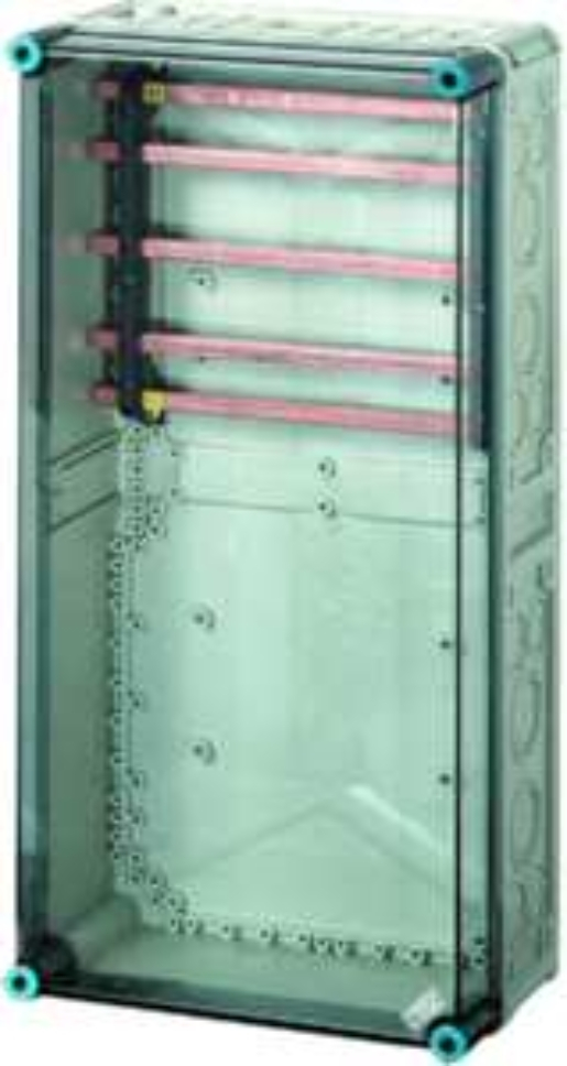 Isolierstoffgekapselte Niederspannungs-S chaltanlage in Kastenbauform als "Typgep rüfte Schaltgeräte-Kombination" TSK nach IEC 60 439 -1 für Wandaufbau. Gehäuse m üssen zur Montage im Freien geeignet sei n, es sind die klimatischen Ein- und Aus wirkungen auf die Betriebsmittel zu beac hten. Kastenunterteile und -deckel aus s chlagfestem Polycarbonat, halogen- und s ilikonfrei Farbe RAL 7032, Deckel transp arent mit Schnellverschlüssen für Werkze ugbetätigung. Brennverhalten gem. DIN VD E 0471 Teil Glühdrahtprüfung 960 C. Maxi male Wasseraufnahme von 10 mg nach DIN 5 3473. Schutzmassnahme: Schutzisoliert Sc hutzklasse II. Fabrikat: HENSEL Mi-Verte iler. Sammelschienengehäuse 5polig, N-Le iter mit gleicher Stromtragfähigkeit wie die Aussenleiter. Schutzart: IP 65 nach DIN EN 60 529. Mi 6458