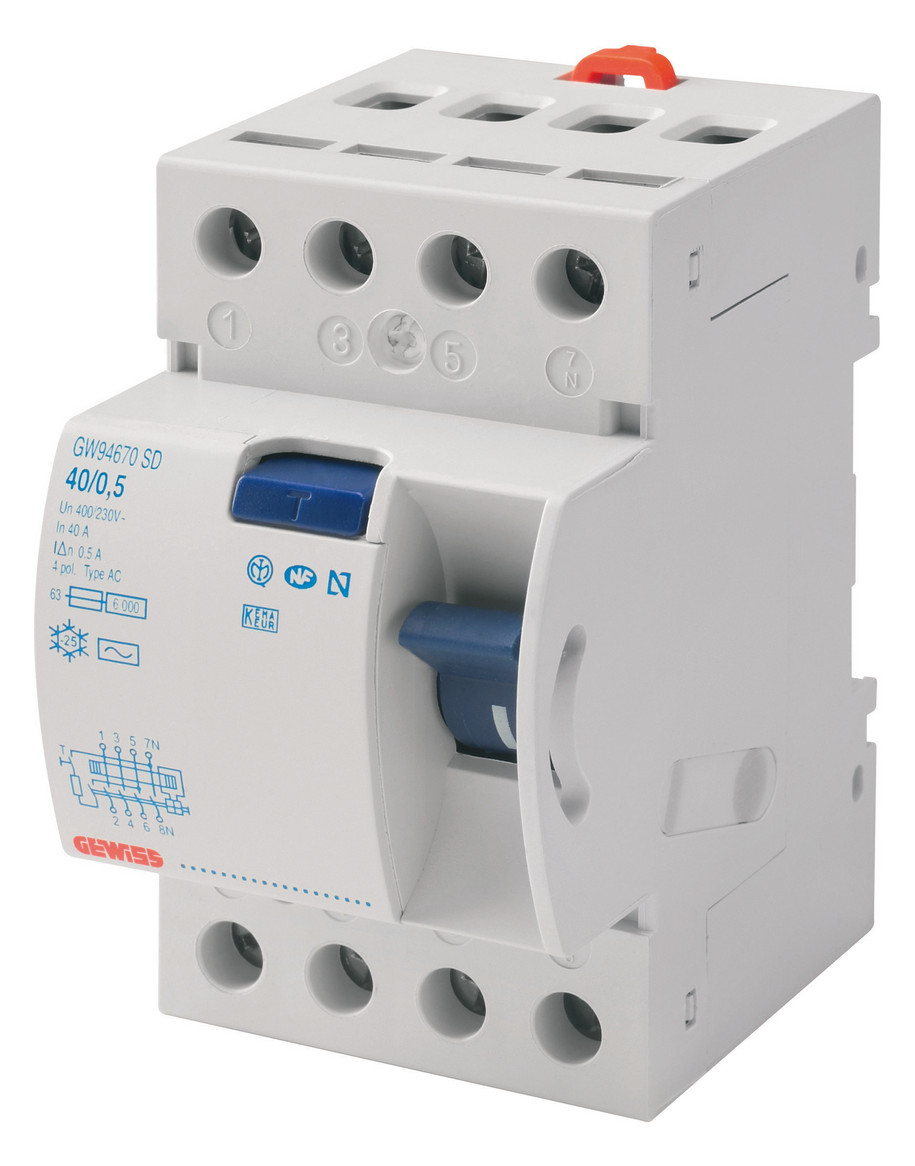 1St. Gewiss Fehlerstrom-Schutzschalter GW94897 (RCCB) 40/0.03A Typ A 4P 3TE
