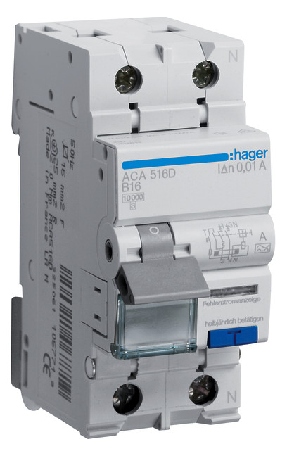 1St. Hager ACA516D FI-LS 1P+N 10kA B-16A 10mA Typ A