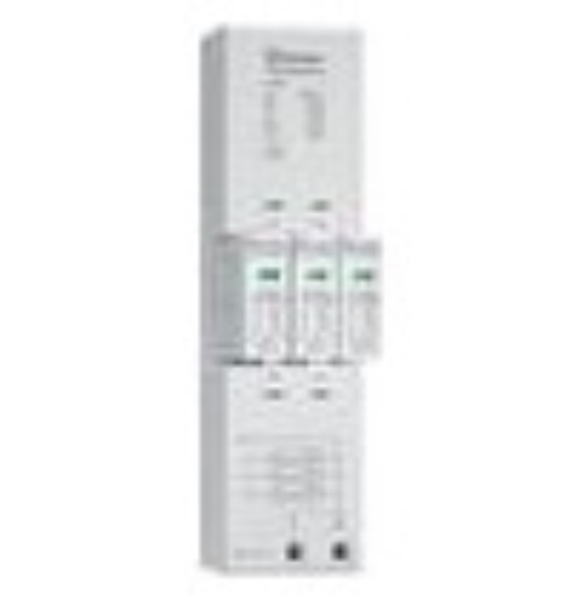 Blitz- und überspannungsableiter Typ 12 für 40 mm Sammelschiene, 12,5 kA pro Pfad, 4-Leitersystem, L1, L2, L3, PEN, austauschbare Module, optische Defektanzeige, Haltesystem für die Module, einsetzbar für die Ableitung von Blitzströmen bis 12,5 kA pro Pol, Installation im Vorzählerbereich an der Schnittstelle der Zonen LPZ zu LPZ 1, ohne Leckstrom und Folgestrom 7P.03.8.255.S012