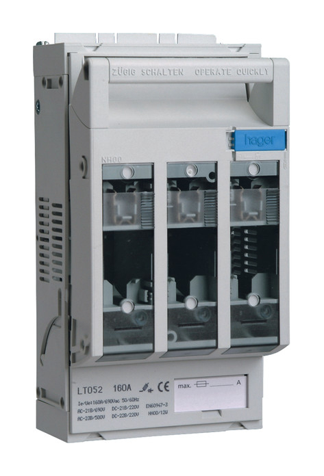 1St. Hager LT052 Sicherungslasttrennschalter LT NH00 160A Schraubanschluss M8 Hutschiene