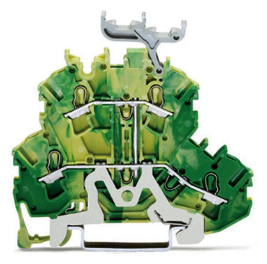 Doppelstockklemme; 4-Leiter-Schutzleiterklemme; 2,5 mm²; PE; für Anwendungen Ex e II geeignet; mit Beschriftungsträger; intern gebrückt; für Tragschiene 35 x 15 und 35 x 7,5; Push-in CAGE CLAMP®; 2,50 mm²; grün-gelb