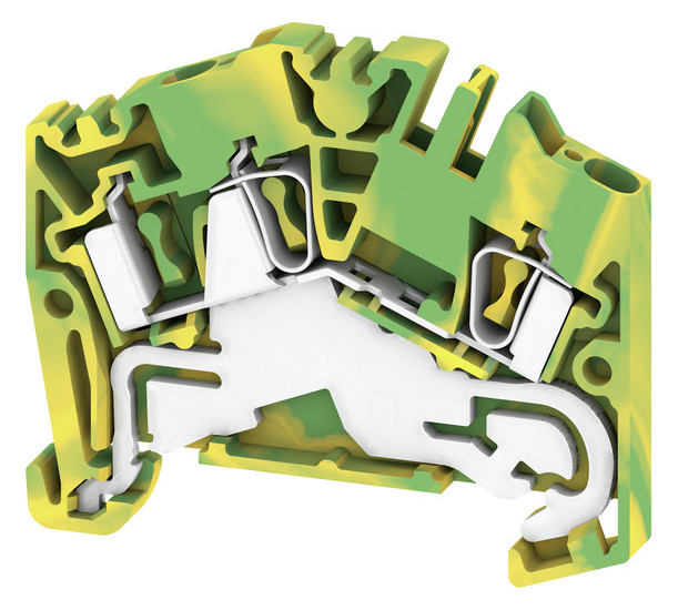 Reihenklemme zum Anschliessen oder Verbinden von Schutzleitern mit der Befestigungsgrundlage Erde. Gehärteter Stahl hält den mechanischen Kräften stand, Zinn-beschichtetes Kupfer sorgt für beste Leitfähigkeit. ZPE 2.5-2