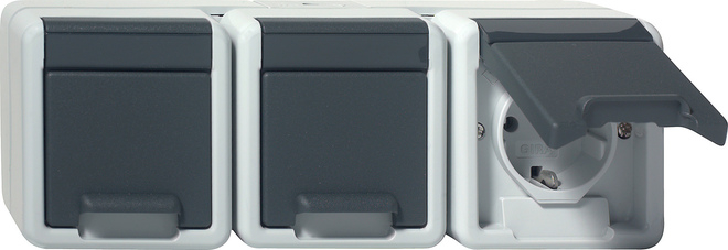 1St. Gira 478930 Dreifachsteckdose 16A 250V waagerecht mit Klappdeckel WG AP Grau Nachfolger von 078930