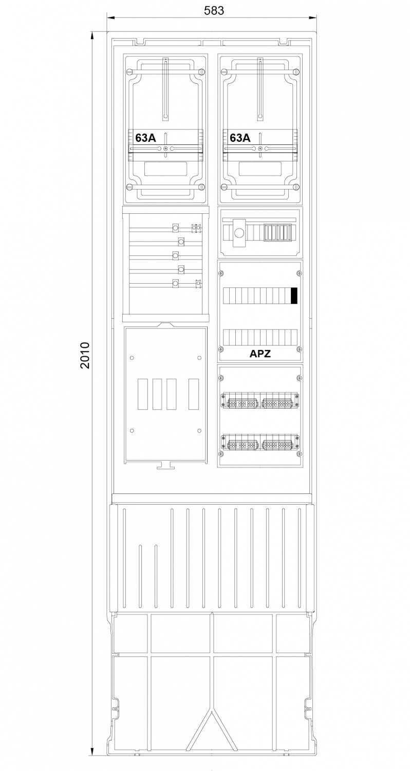 1St. F-Tronic ZSA202-2-2ZK-APZ-TSG Zähleranschlusssäule 2-feldrig, H=2010mm, 2-3.HZ, Haube geschl, ZSA202-2-2ZK-APZ-TSG-HAK-HG 7160151