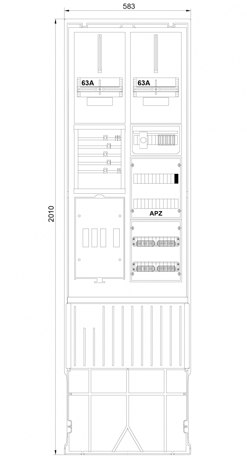 1St. F-Tronic ZSA202-2-2ZK-APZ-TSG Zähleranschlusssäule 2-feldrig, H=2010mm, 2-3.HZ, ohne Haube, ZSA202-2-2ZK-APZ-TSG-HAK-HO 7160144