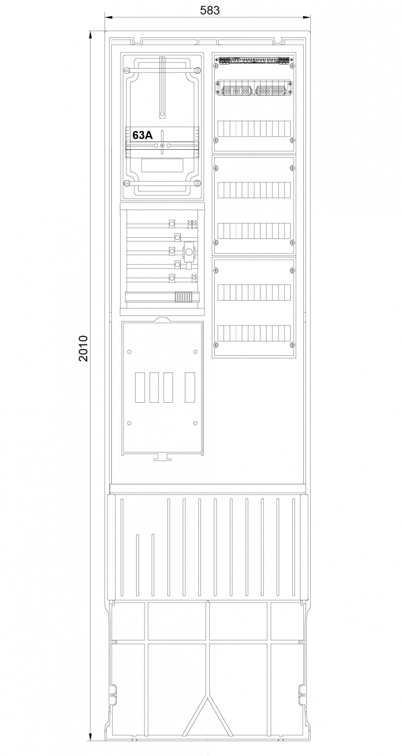 1St. F-Tronic ZSA202-2-ZK-SK-TSG-H Zähleranschlusssäule 2-feldrig, H=2010mm, 3.HZ, Haube geschl., ZSA202-2-ZK-SK-TSG-HAK-HG 7160150
