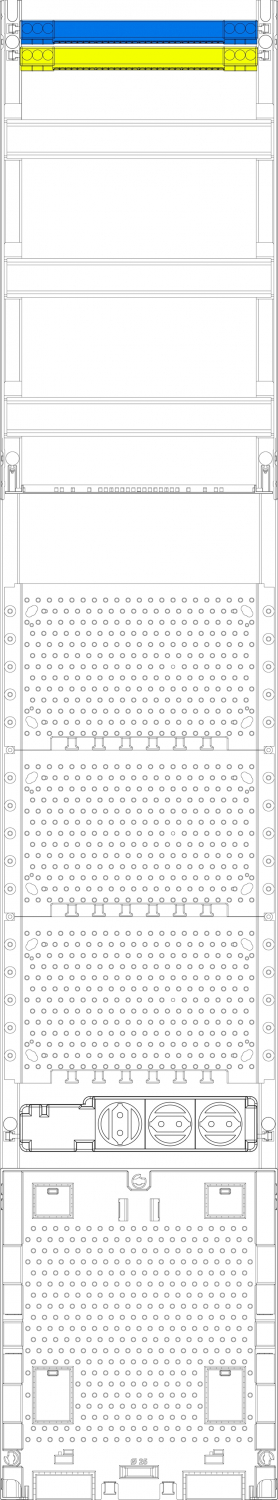 Kombinationsfeld 1-feldrig, Höhe 1350 mm, Breite 250 mm, Verteiler 3-reihig und Kommunikationsfeld, APZ-Platz ohne APL-Set