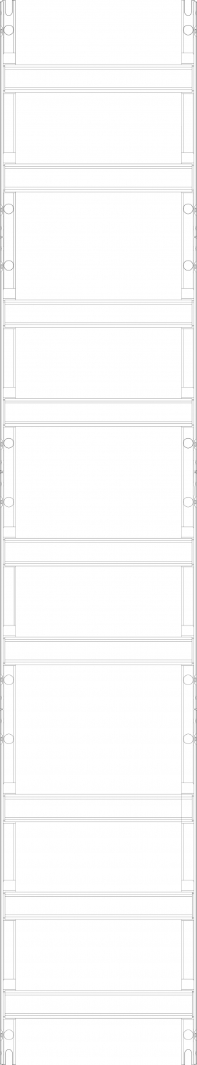 Verteilerfeld 1-feldrig, Höhe 1350 mm, Breite 250 mm, 9-reihig, Obereranschlussraum geschlossen