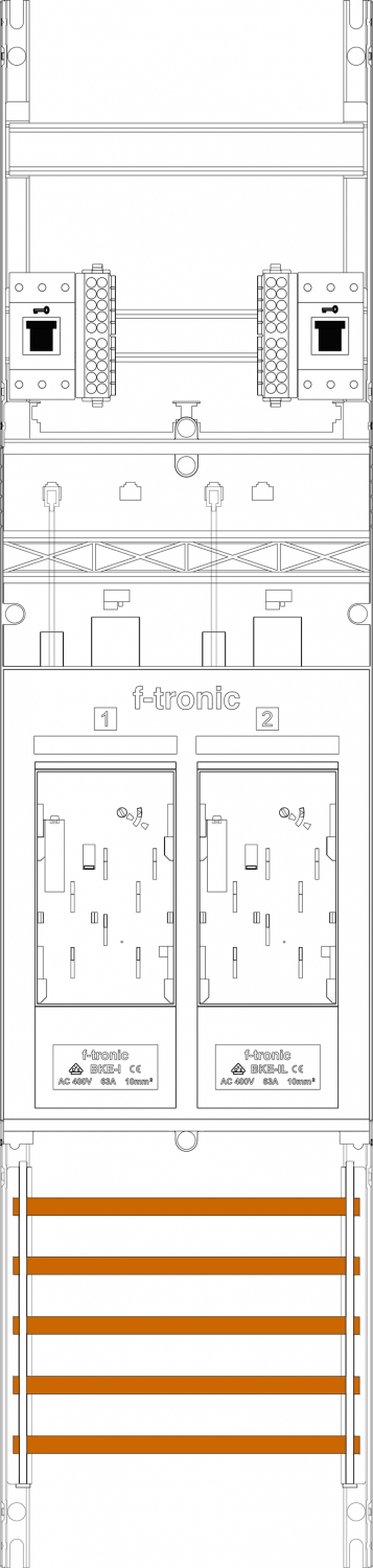 1St. F-Tronic E16DS-10-10L-HSS Zählerfeld E16DS-10-10L-HSS, 1-feldrig,H=1050mm,2-eHZ kurze, und lange Kabel mit DS, 2 HSS 7141260