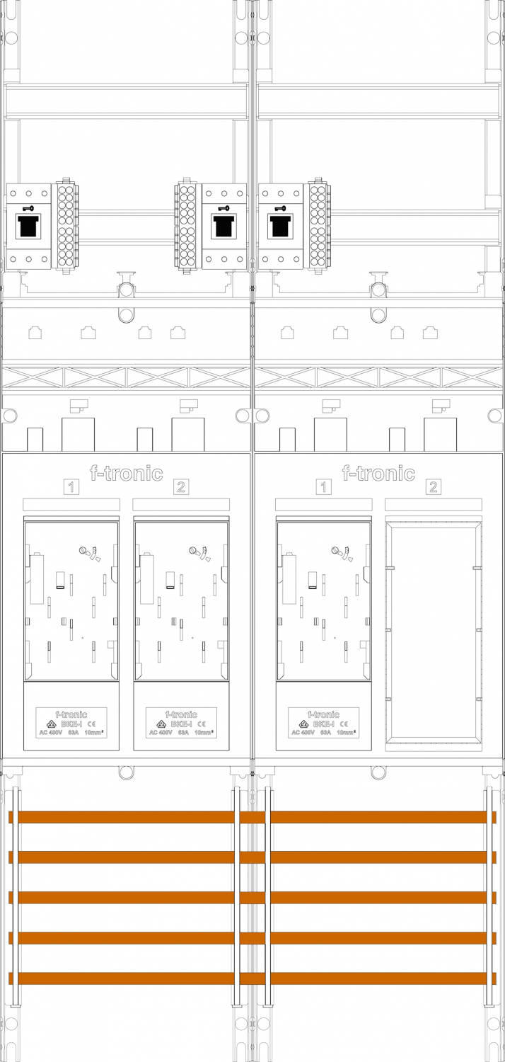 1St. F-Tronic E16ER6-HSS Zählerfeld E16ER6-HSS, 2-feldrig, H=1050mm, 3-eHZ, 3 HSS, 1 Res. 7141119