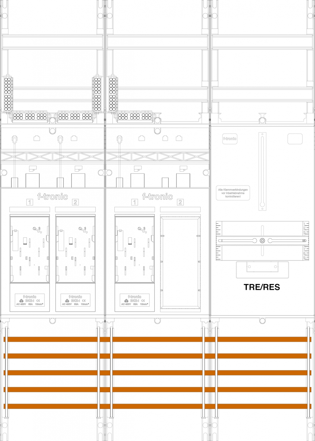 1St. F-Tronic E16ER6DSR1B Zählerfeld E16ER6DSR1B, 3-feldrig, H=1050mm, 3-eHZ, mit DS, 1 Res., 1 TRE 7141175