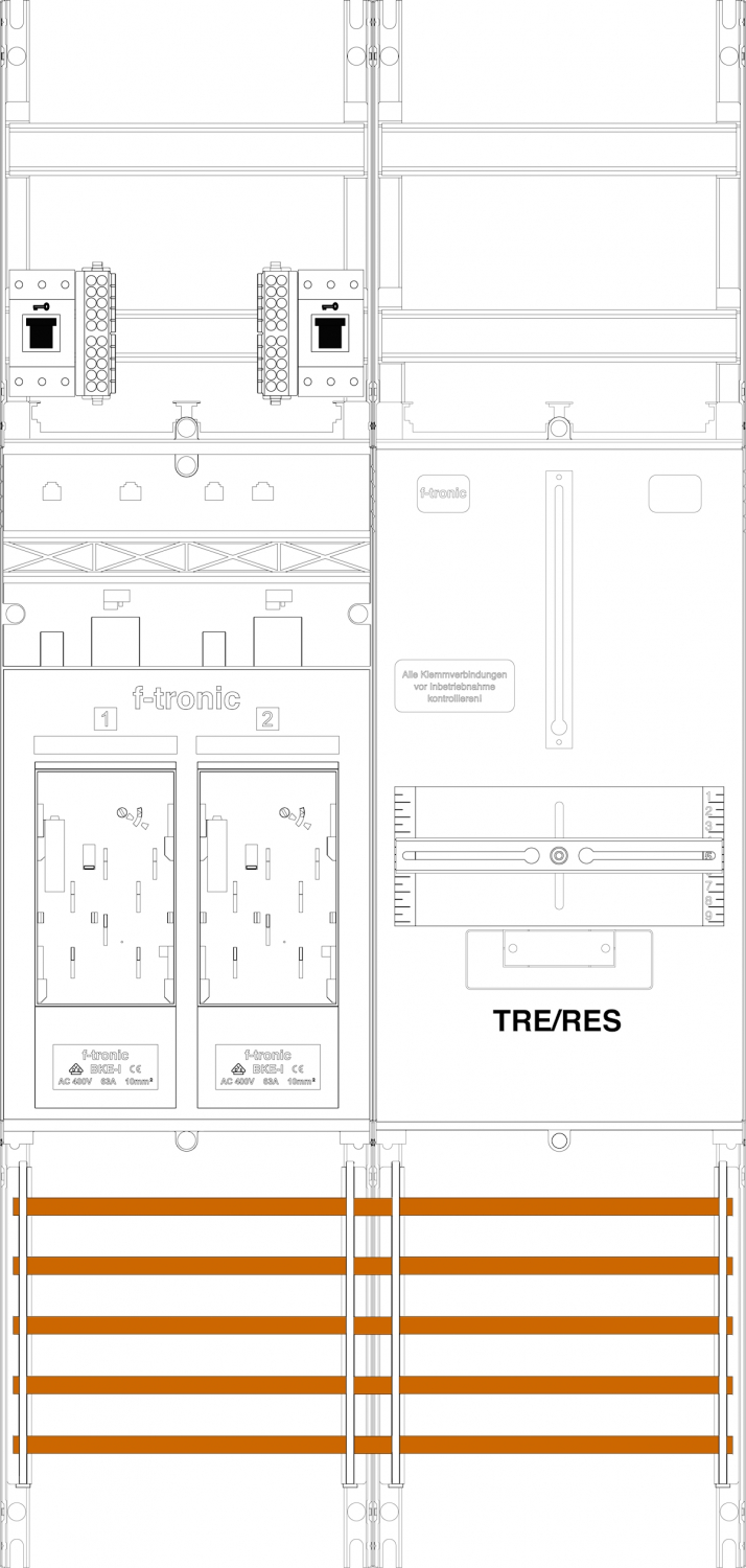 1St. F-Tronic E16R1B-HSS Zählerfeld E16R1B-HSS, 2-feldrig, H=1050mm, 2-eHZ, 2 HSS, 1 TRE 7141124