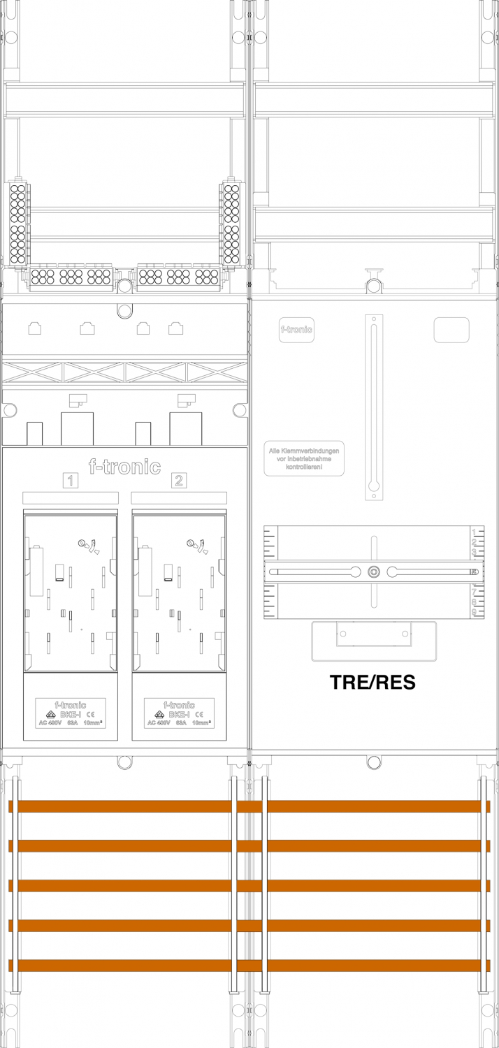 1St. F-Tronic E16R1B Zählerfeld E16R1B, 2-feldrig, H=1050mm, 2-eHZ, 1 TRE 7141024