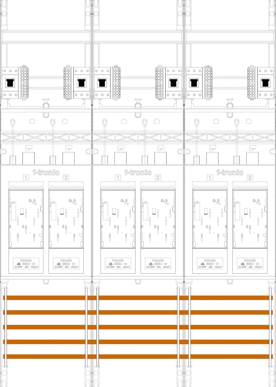 1St. F-Tronic E316DS-HSP Zählerfeld E316DS-HSP,H=1050mm, 3-feldrig, 6-eHZ mit DS, 6 HSP 7141222