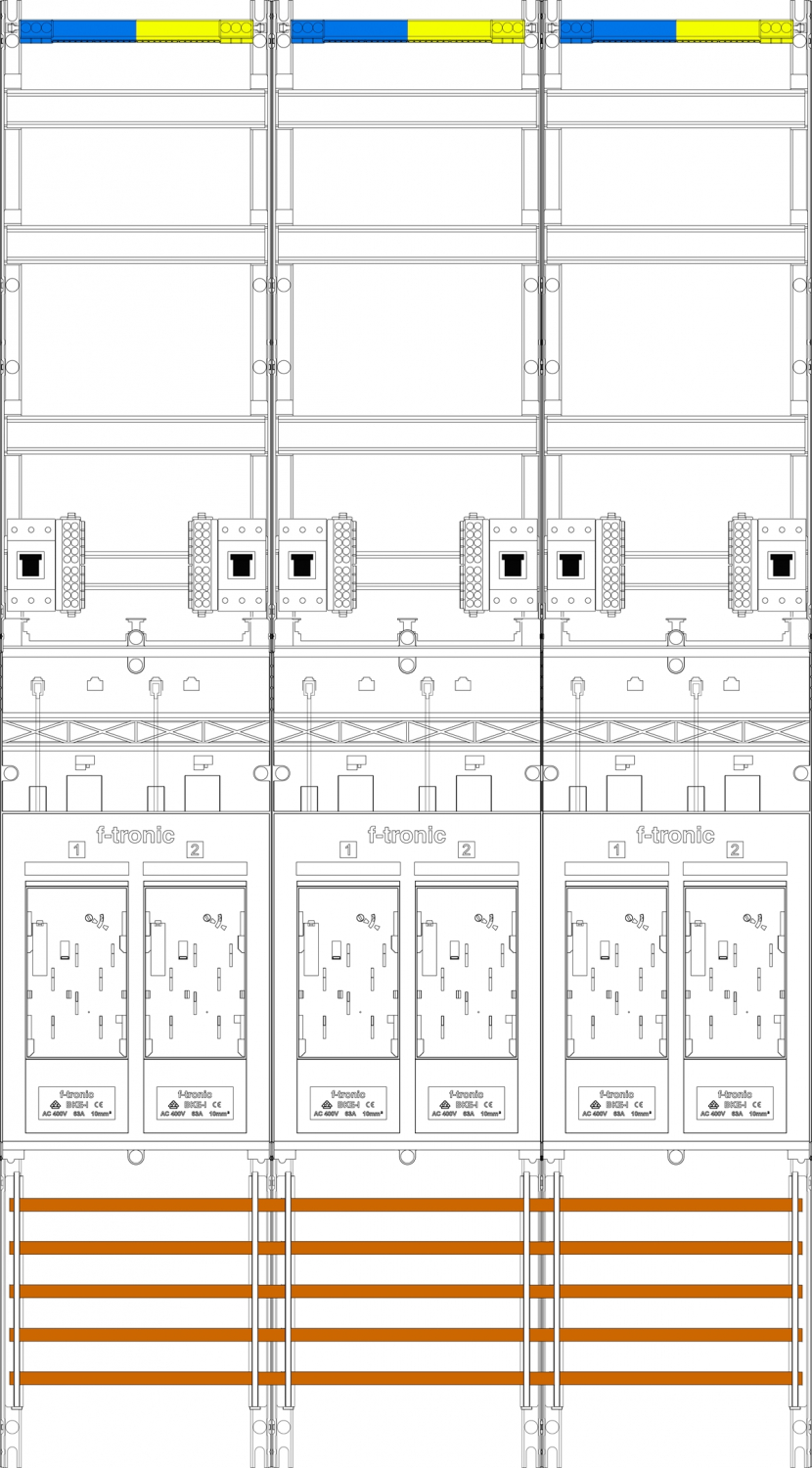1St. F-Tronic E319DS-HSP Zählerfeld E319DS-HSP,H=1350mm, 3-feldrig, 6-eHZ mit DS, 6 HSP 7143218