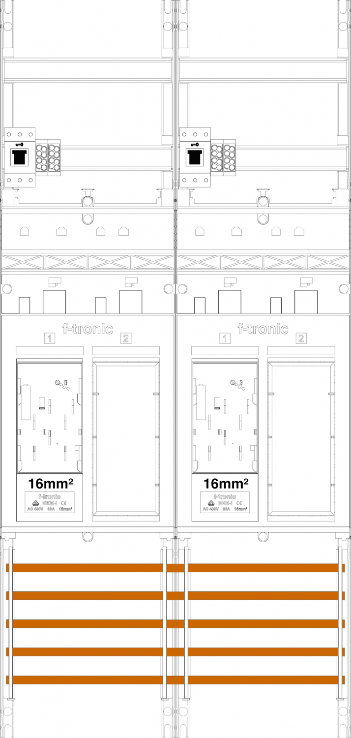 1St. F-Tronic ER26-16-HSS Zählerfeld ER26-16-HSS, 2-feldrig,H=1050mm,2-eHZ 16mm², 2 HSS, 2 Res. 7141106