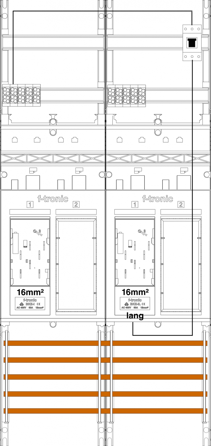 1St. F-Tronic ER26-16L-PV Zählerfeld ER26-16L-PV, 2-feldrig,H=1050mm,2-eHZ 16mm², Kaskade, 1 HSP, 2 Res. 7141029