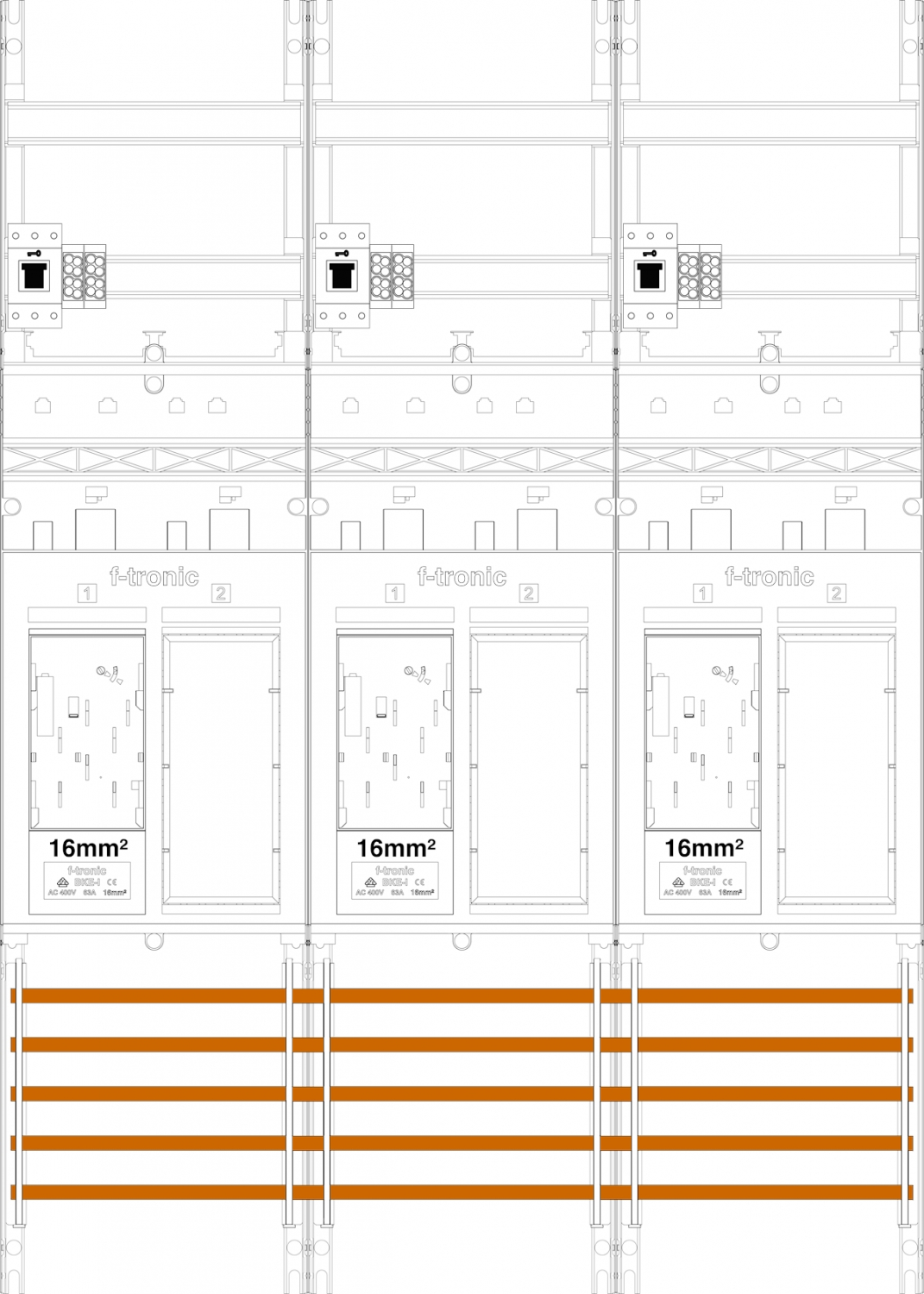 1St. F-Tronic ER36-16-HSS Zählerfeld ER36-16-HSS, 3-feldrig,H=1050mm,3-eHZ 16mm², 3 HSS, 3 Res. 7141107
