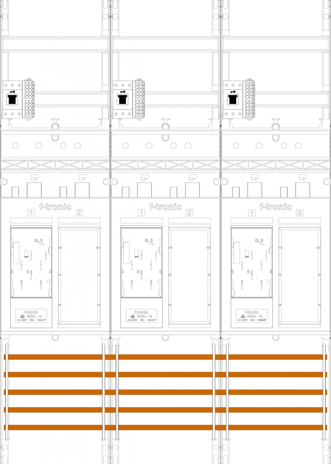1St. F-Tronic ER36-HSS Zählerfeld ER36-HSS, 3-feldrig, H=1050mm, 3-eHZ, 3 HSS, 3 Res. 7141103