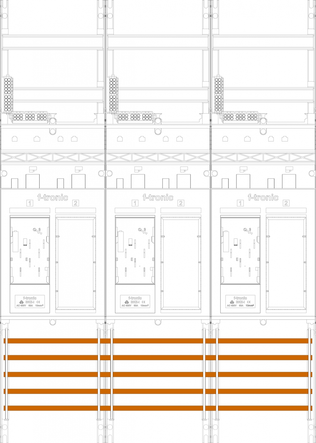 1St. F-Tronic ER36 Zählerfeld ER36, 3-feldrig, H=1050mm, 3-eHZ, 3 Res. 7141003
