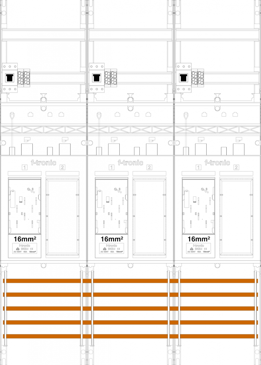 1St. F-Tronic ER36DS-16-HSP Zählerfeld ER36DS-16-HSP, 3-feldrig,H=1050mm,3-eHZ 16mm², mit DS, 3 HSP, 3 Res. 7141207