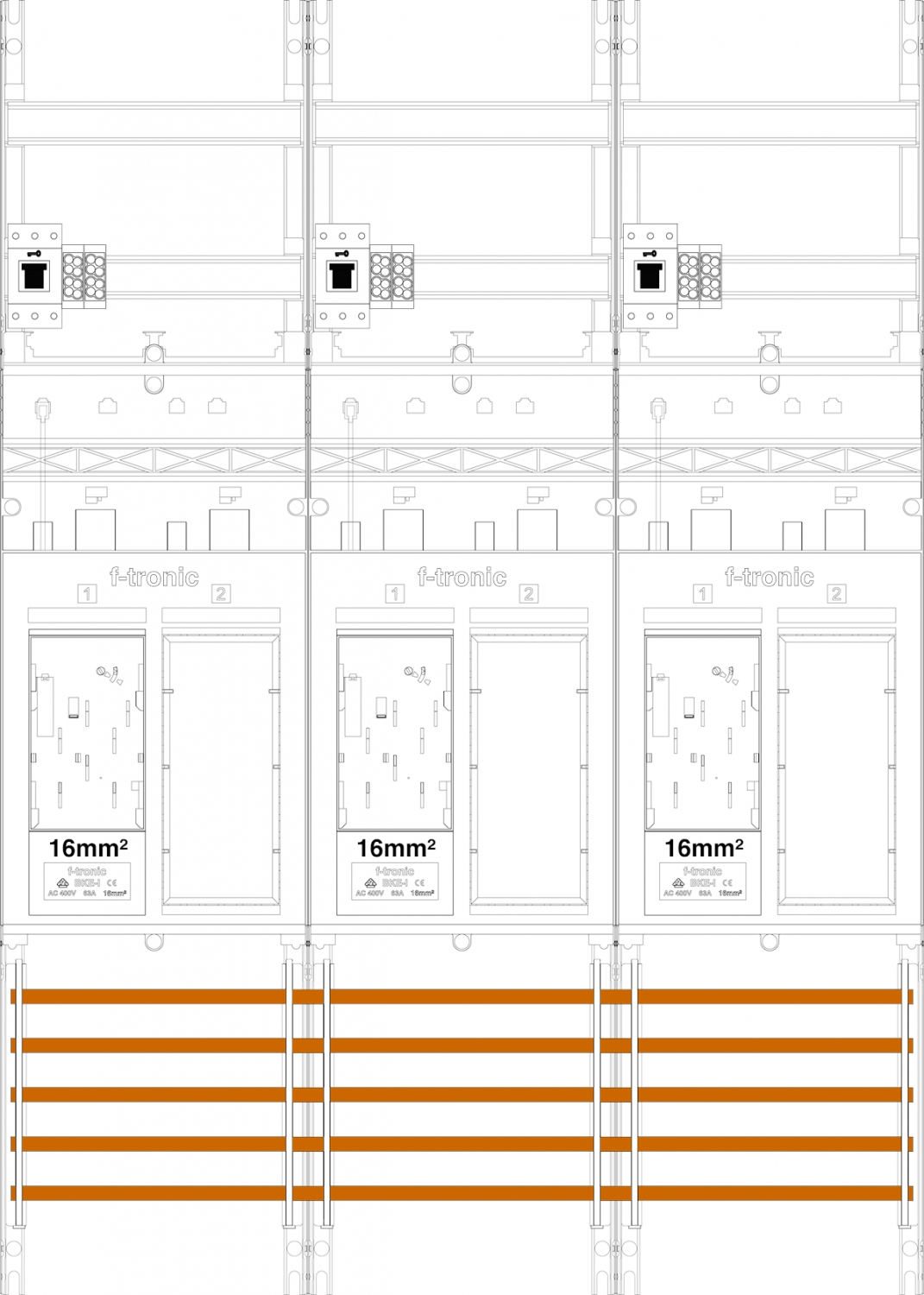1St. F-Tronic ER36DS-16-HSS Zählerfeld ER36DS-16-HSS, 3-feldrig,H=1050mm,3-eHZ 16mm², mit DS, 3 HSS, 3 Res. 7141257