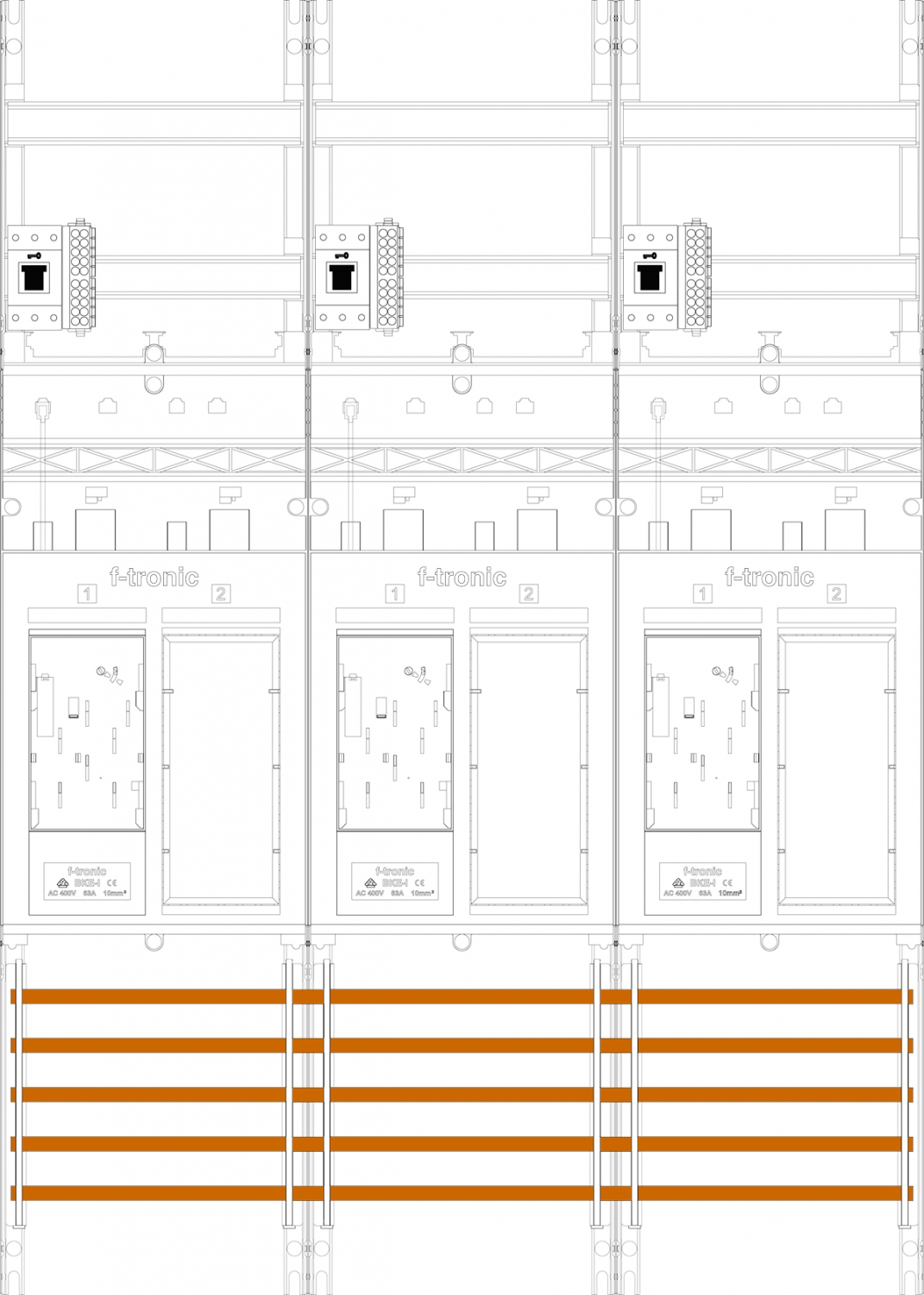 1St. F-Tronic ER36DS-HSS Zählerfeld ER36DS-HSS,H=1050mm, 3-feldrig, 3-eHZ mit DS, 3 HSS, 3 Res 7141253