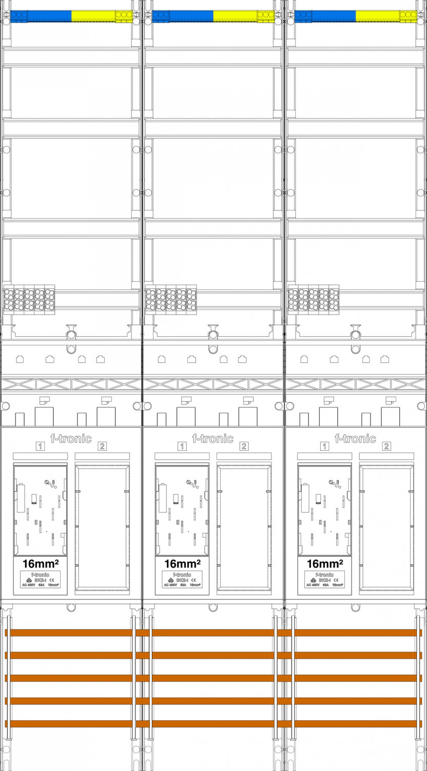 1St. F-Tronic ER39-16 Zählerfeld ER39-16, 3-feldrig, H=1350mm, 3-eHZ 16mm², 3 Res. 7143007