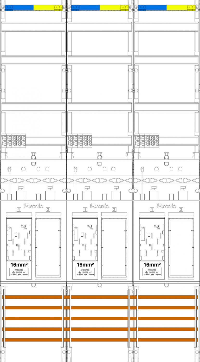 1St. F-Tronic ER39DS-16 Zählerfeld ER39DS-16,3-feldrig, H=1350mm, 3-eHZ 16mm² mit DS, 3 Res. 7143157