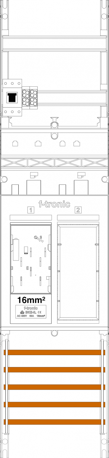 1St. F-Tronic ER6-16L-HSP Zählerfeld ER6-16L-HSP, 1-feldrig,H=1050mm,1-eHZ 16mm², lange Kabel, 1 HSP, 1 Res. 7141055