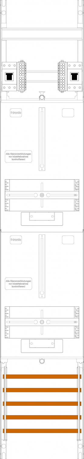 Zählerfeld 1-feldrig, 2-Zählerplätze 3.HZ, Höhe 1350 mm, Breite 250 mm, Sammelschienensystem 5-polig, mit Hauptschalter plombierbar