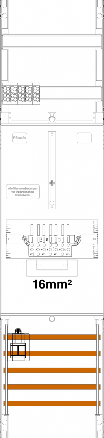 1St. F-Tronic Z1BLUX-16 Zählerfeld Z1BLUX-16,1-feldrig, H=1050mm 1-3.HZ 16mm², inkl., Verdrahtungspaket 7145004